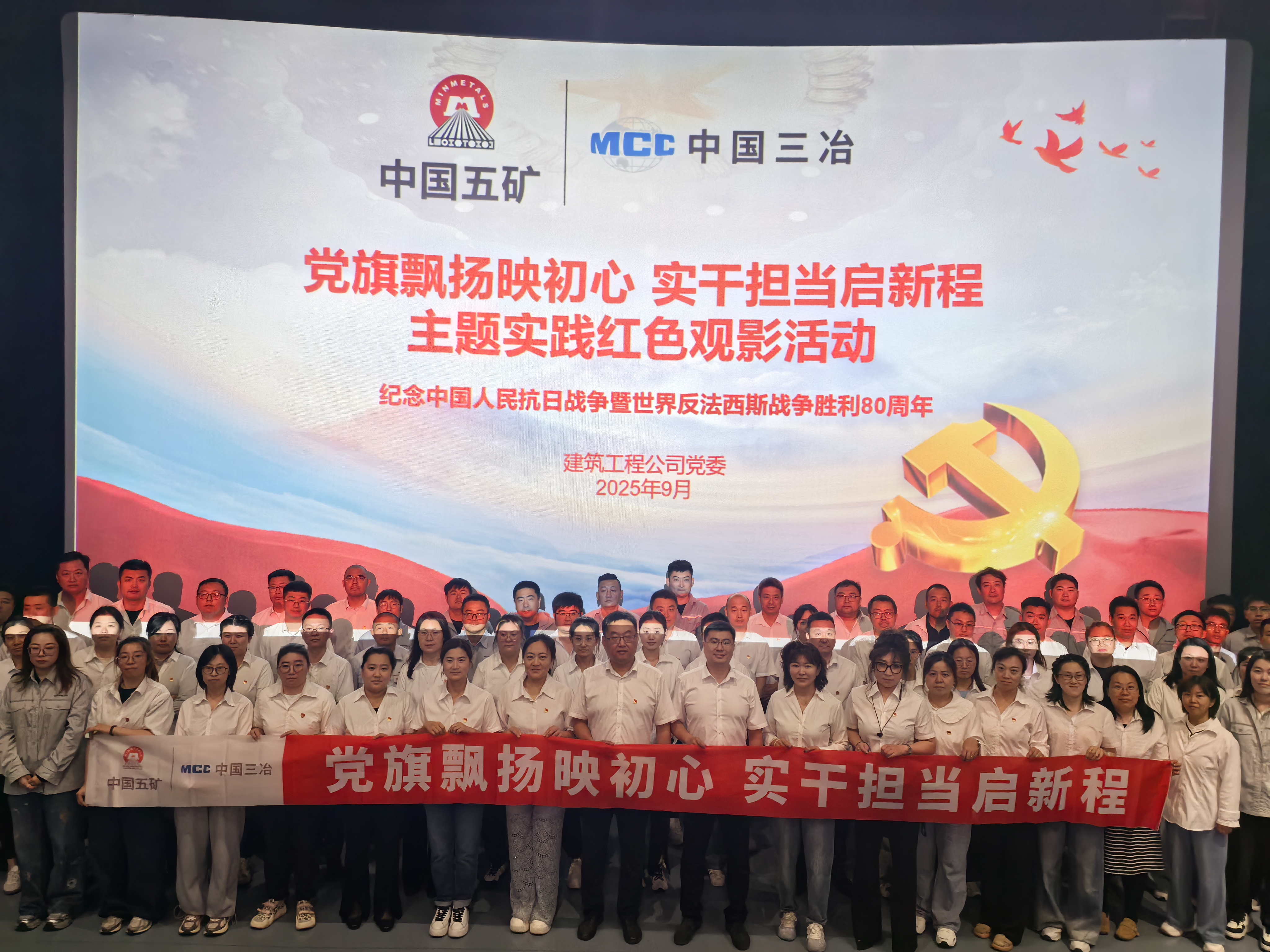 為紀(jì)念中國(guó)人民抗日戰(zhàn)爭(zhēng)暨世界反法西斯戰(zhàn)爭(zhēng)勝利80周年,919日,建筑工程公司黨委開(kāi)展“黨旗飄揚(yáng)映初心 實(shí)干擔(dān)當(dāng)啟新程”主題實(shí)踐紅色觀影活動(dòng),組織全體在鞍黨員、團(tuán)員走進(jìn)影院,一起觀看電影《731》。
